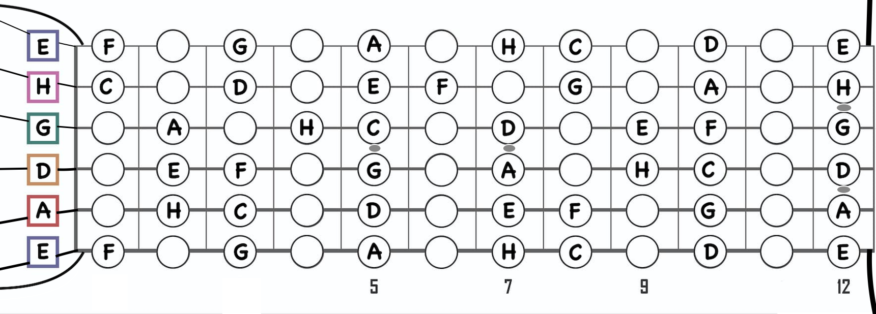 Predstavte si, že hmatník vašej gitary je ako mapa. Na objavovanie hudby a hranie piesní, musíme s touto mapou oboznámiť.